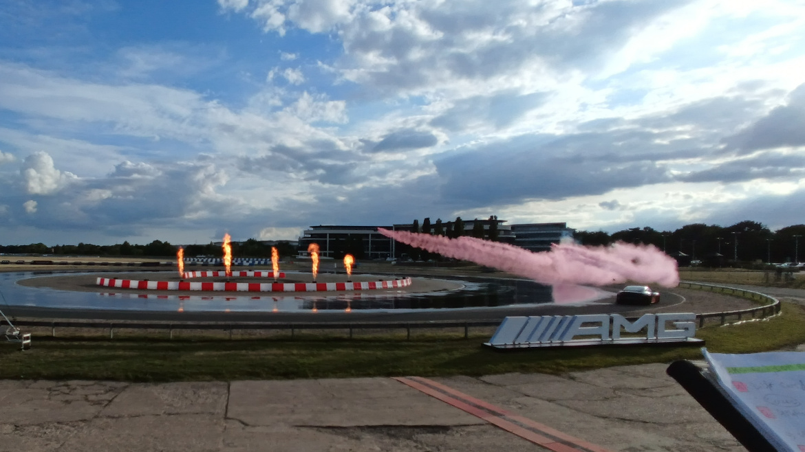 FPV Drohnen brachten einmalige Aufnahmen von den Showfahrten und rundeten das Event mit Smokeflights ab. Auch wenn die ein oder andere Drohne wirklich zu kämpfen hatte um mit dem AMG GT63 pro mitzuhalten.